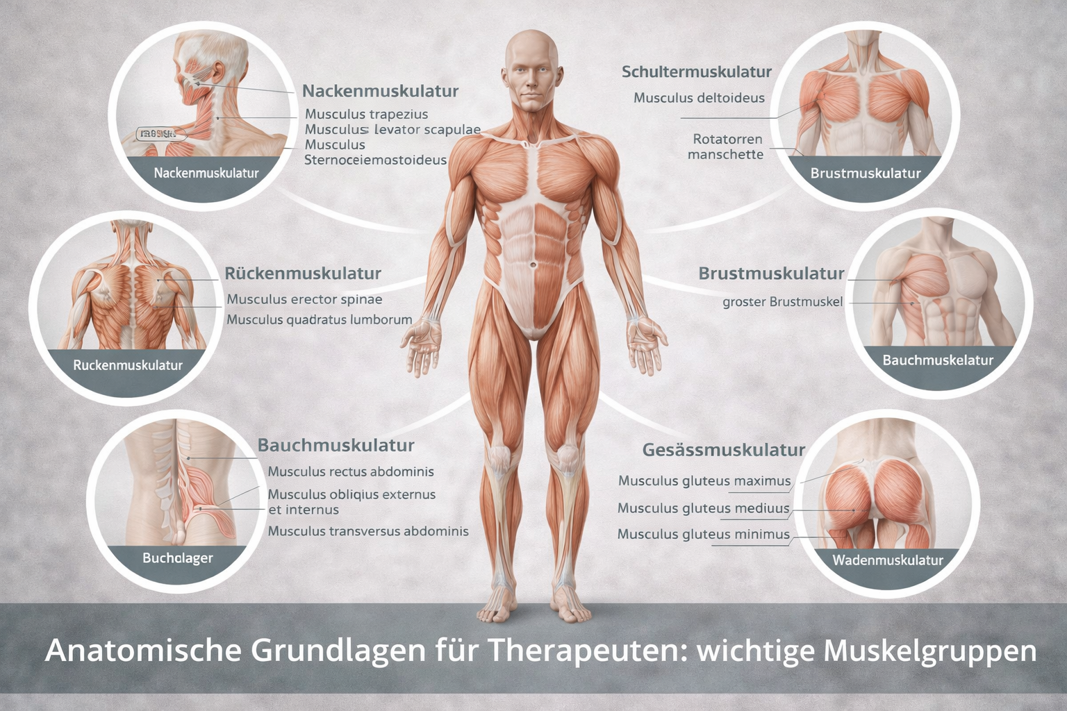 Ein solides anatomisches Wissen ist eine wichtige Grundlage für erfolgreiche manuelle Therapie. Die Kenntnis wichtiger Muskelgruppen ermöglicht es Therapeuten, Beschwerden im Bewegungsapparat besser zu verstehen und gezielt zu behandeln.